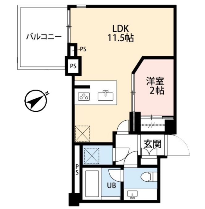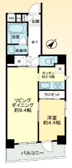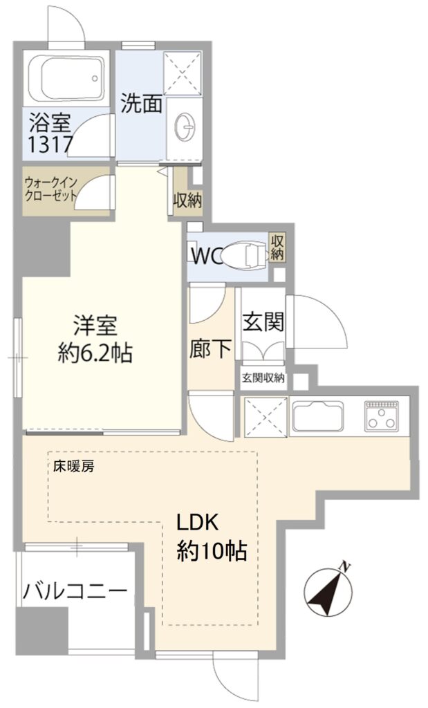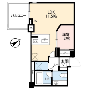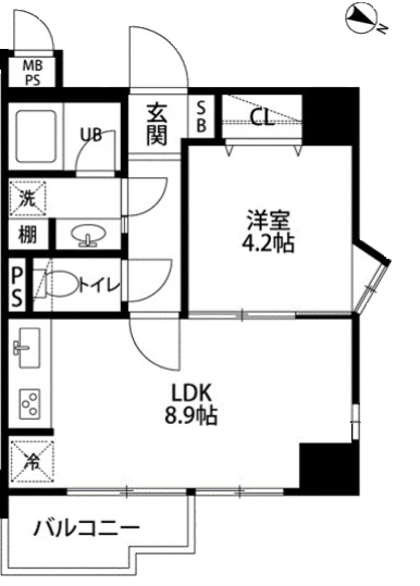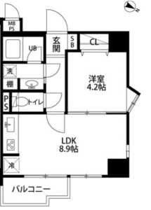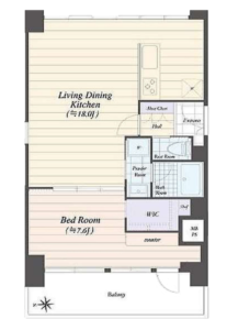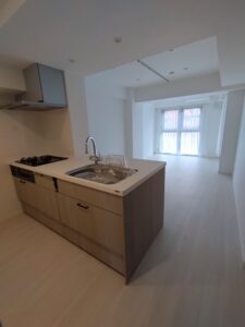 南西向き47平米超。オープンカウンターキッチンを採用した広々1LDK