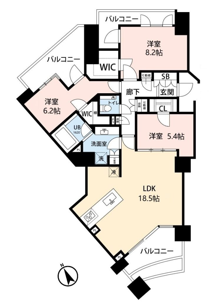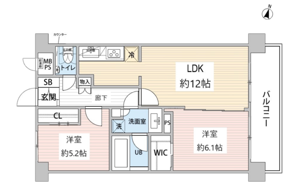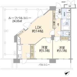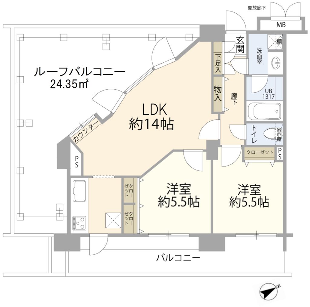 82m2超 角部屋 高層階12階、採光に優れたゆとりの2LDK