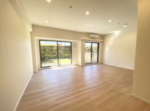 広々約15帖のリビングは南向きで陽当たり良好です。