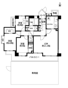 主寝室と約4帖の洋室は角部屋になっており、プライべートな空間になっています。