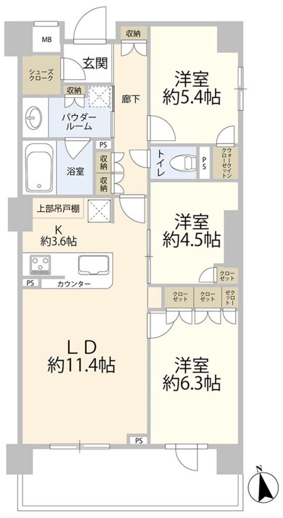 ■葛西駅 徒歩7分!! 東南向き角部屋、広々70m2超3LDKタイプ