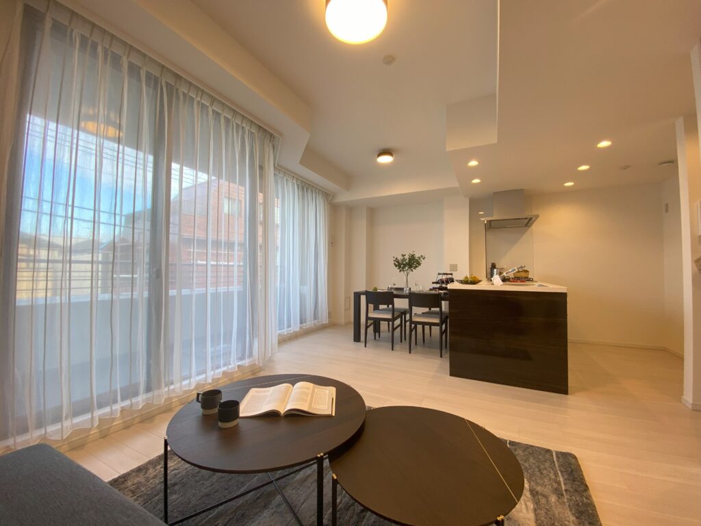 開放的なルーフバルコニーに面したリビングダイニング。窓も大きく眺望や陽当たりが抜群です。